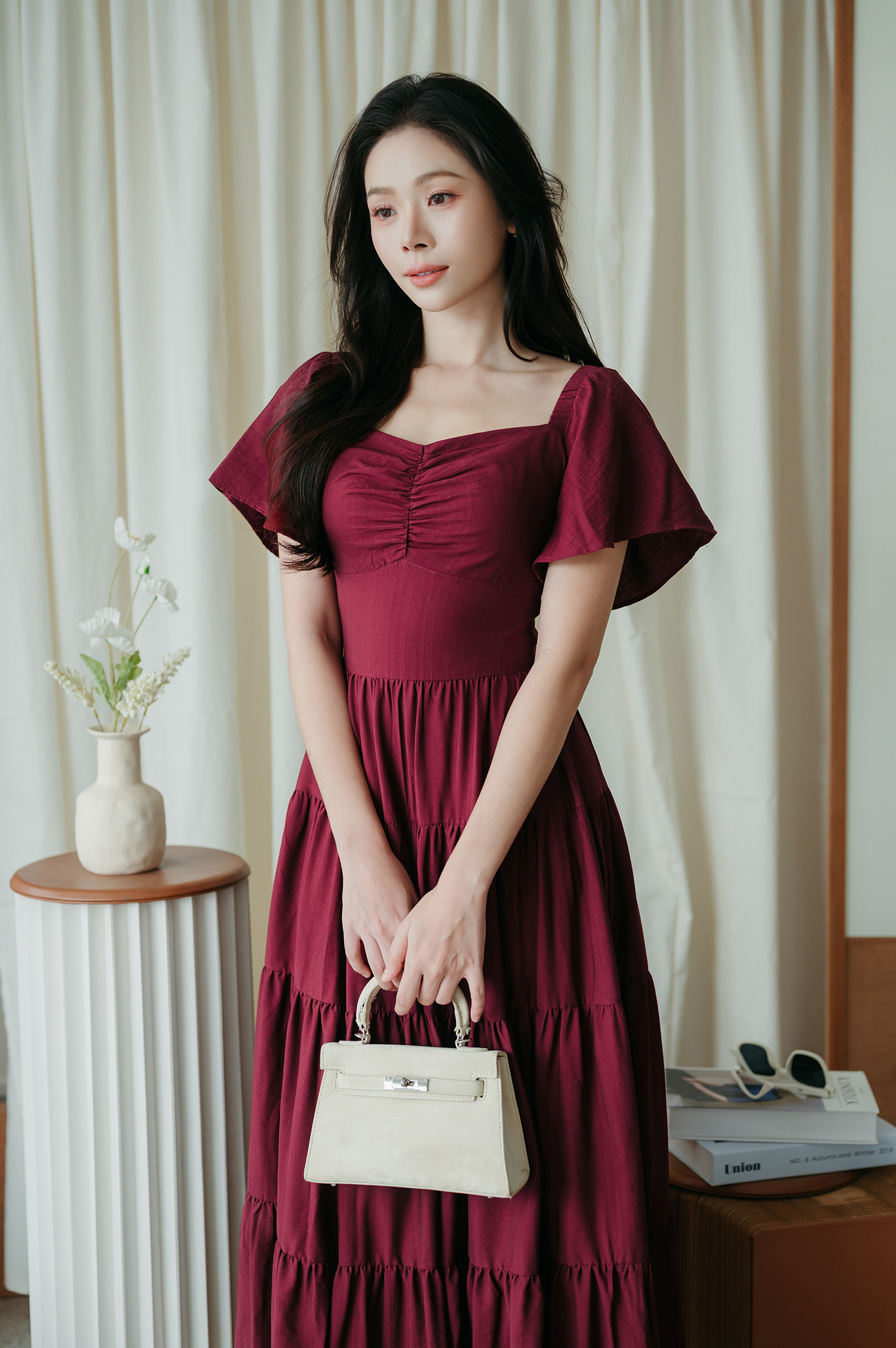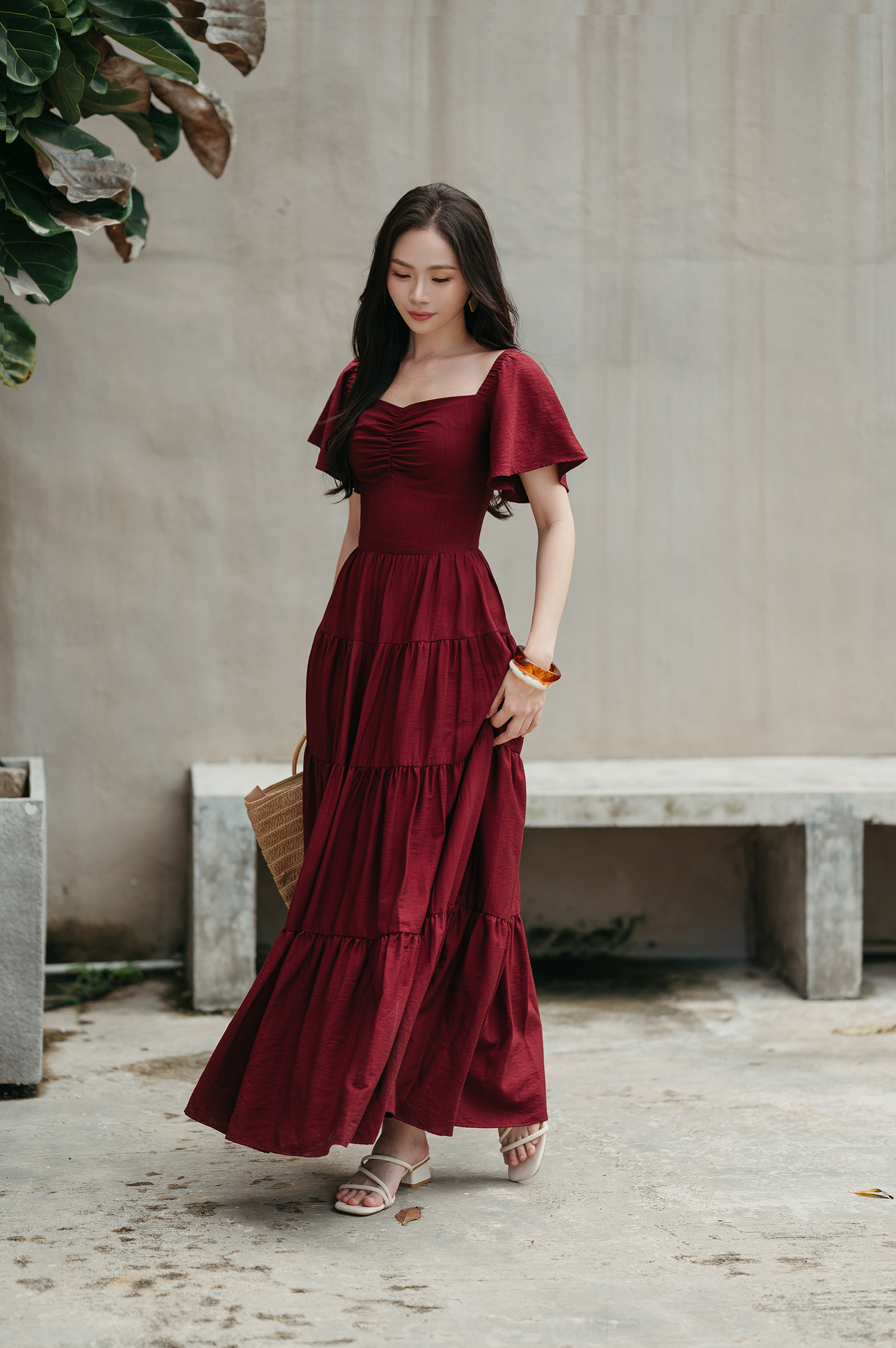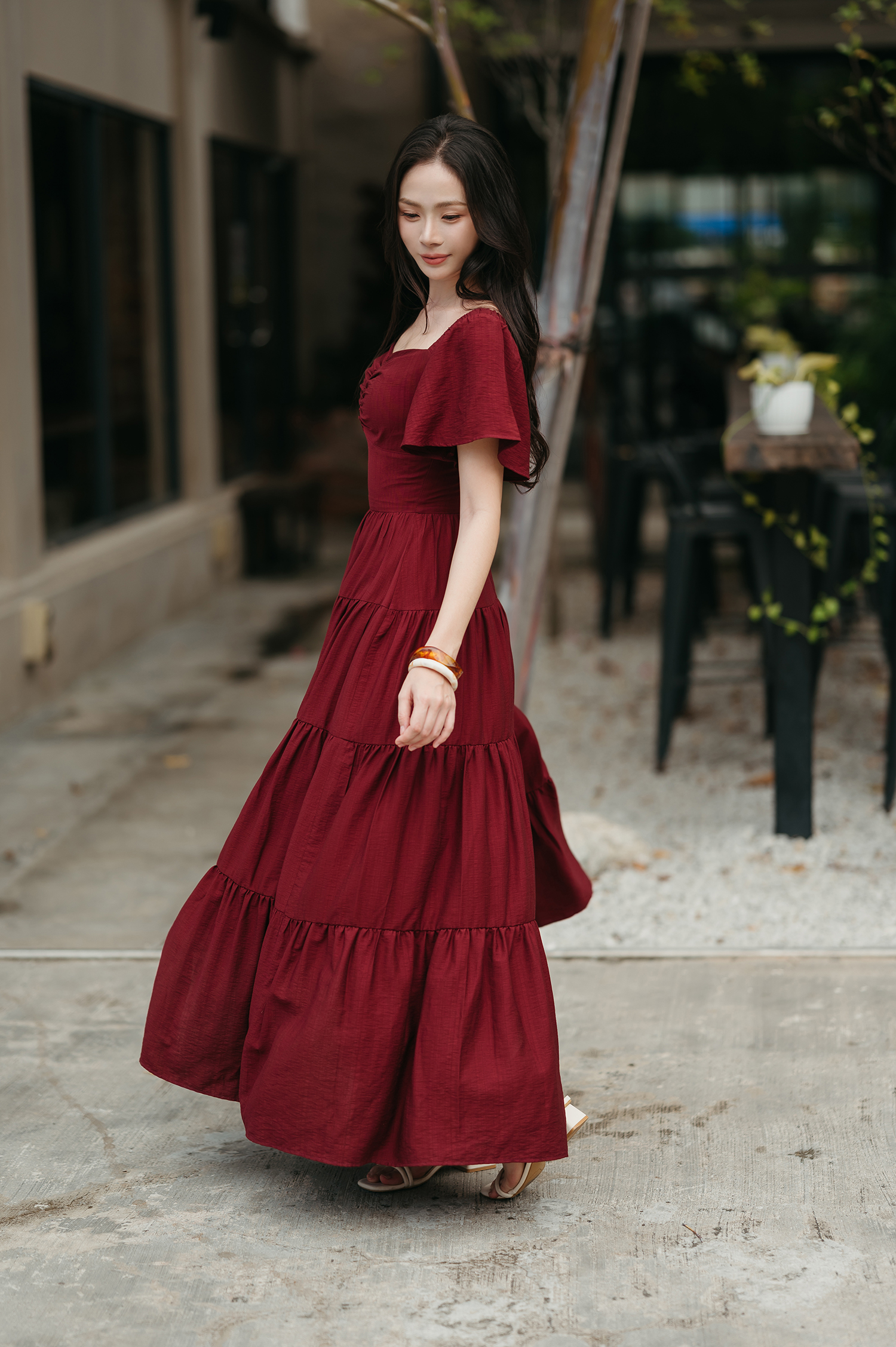 ADELE TIERED MAXI DRESS (MAROON)