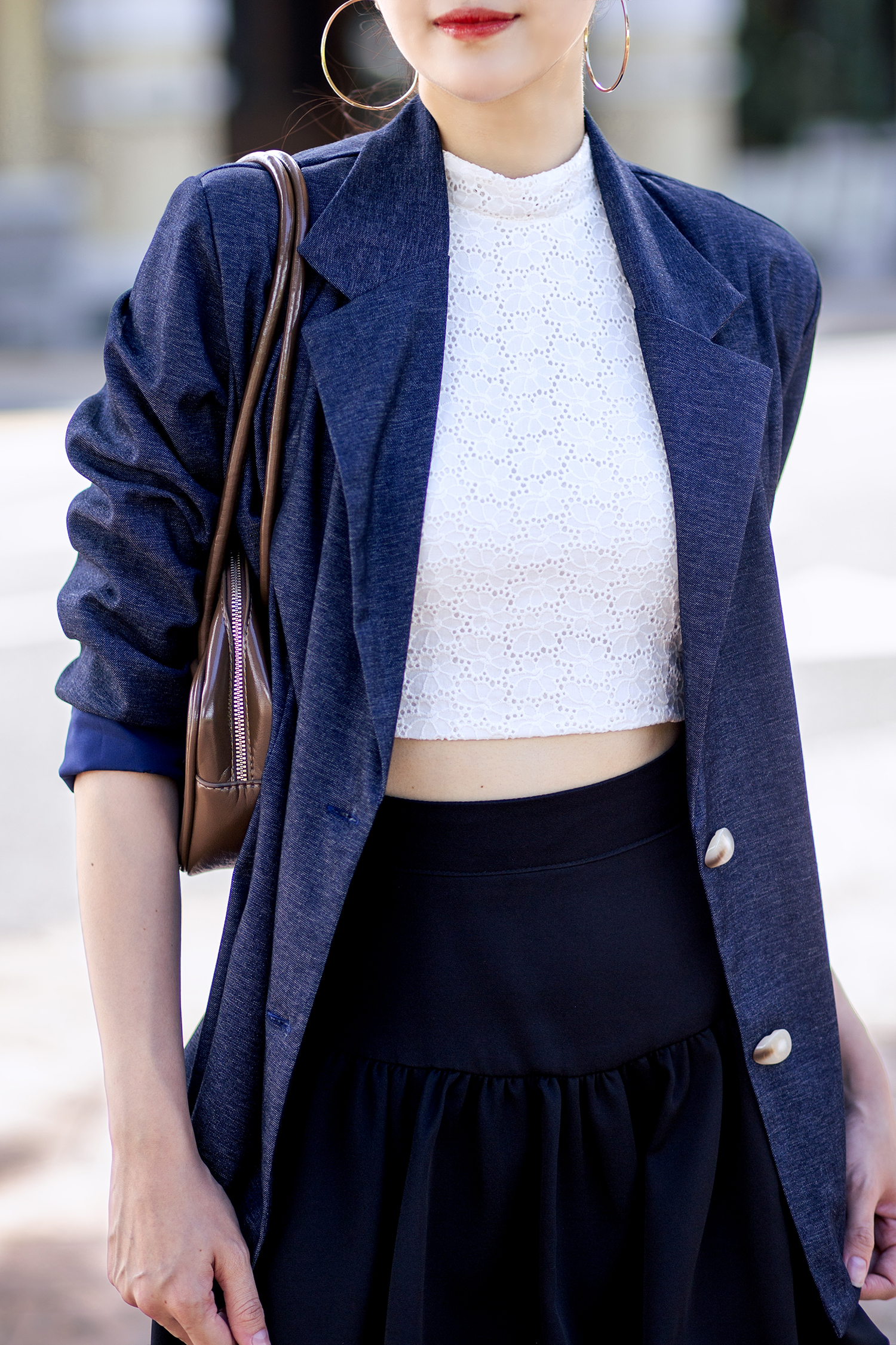 CARA BUTTON DOWN FRONT BLAZER (BLUE)