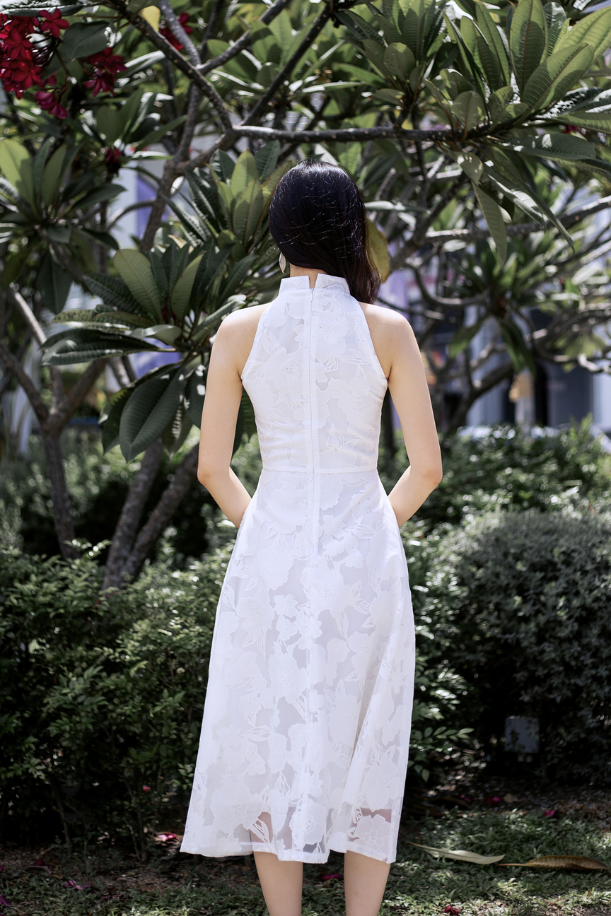 LEVINIA MANDARIN COLLAR MIDI DRESS (WHITE FLORAL)