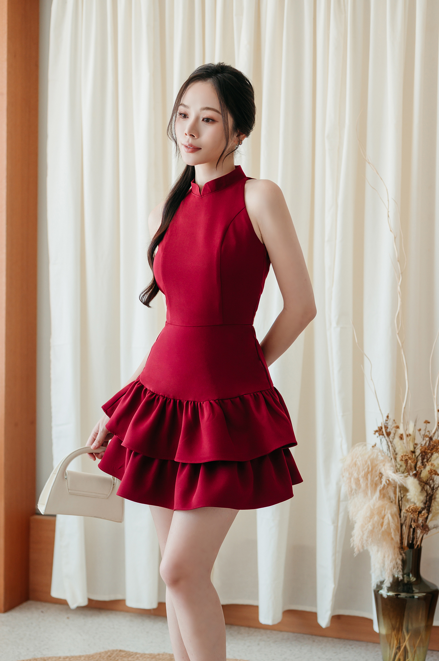 DAFFY CHEONGSAM MINI DRESS (RED)