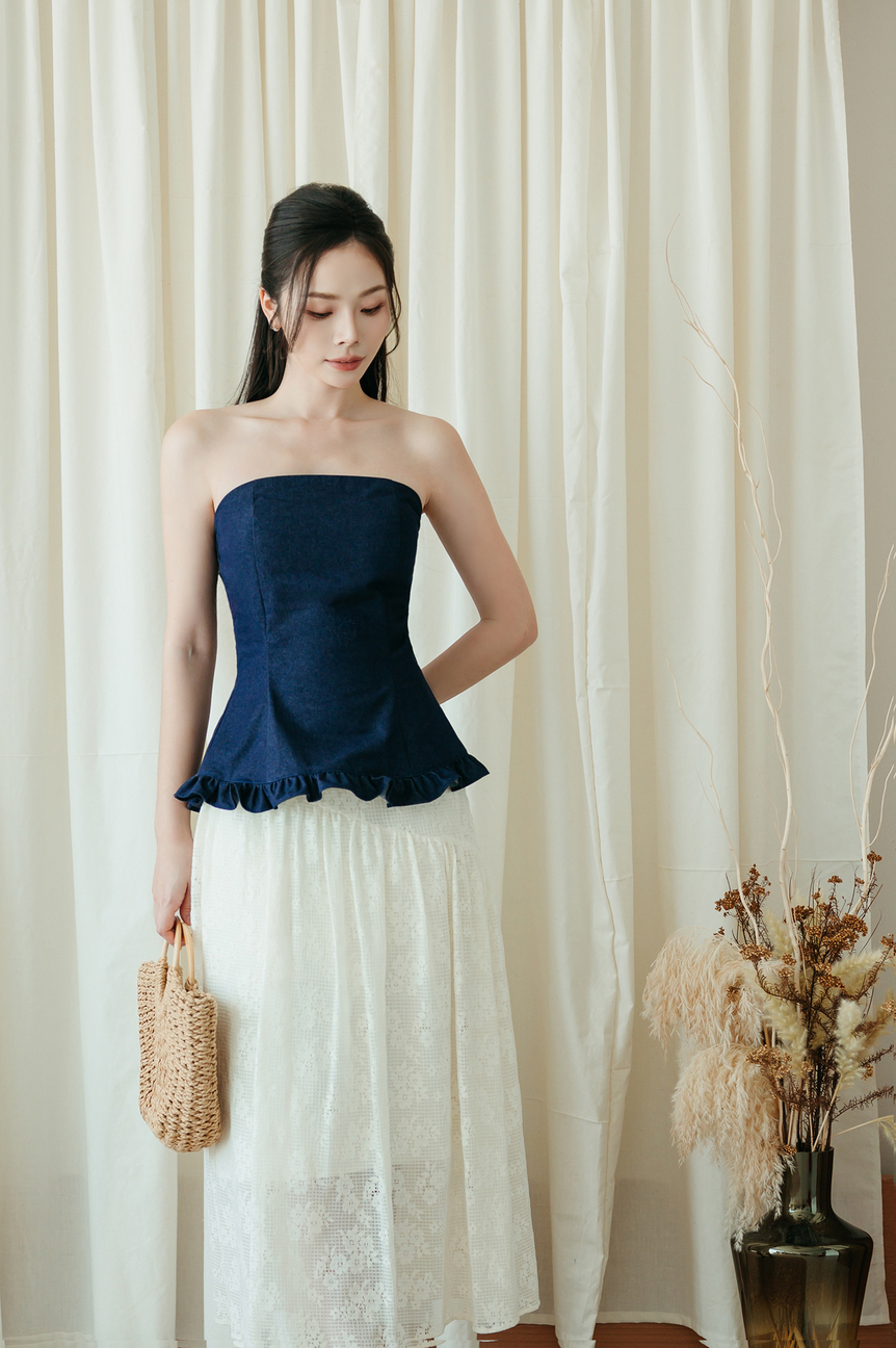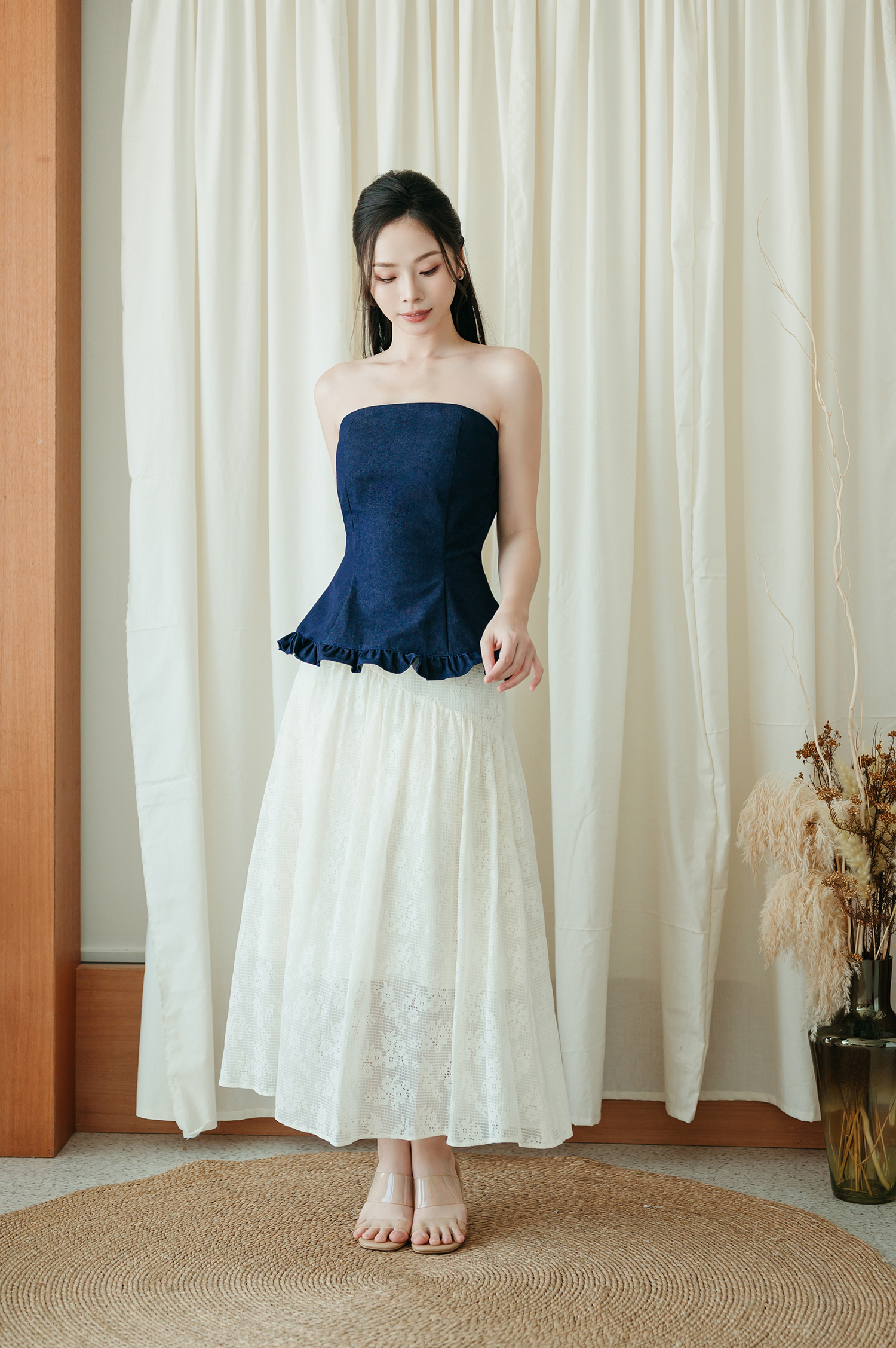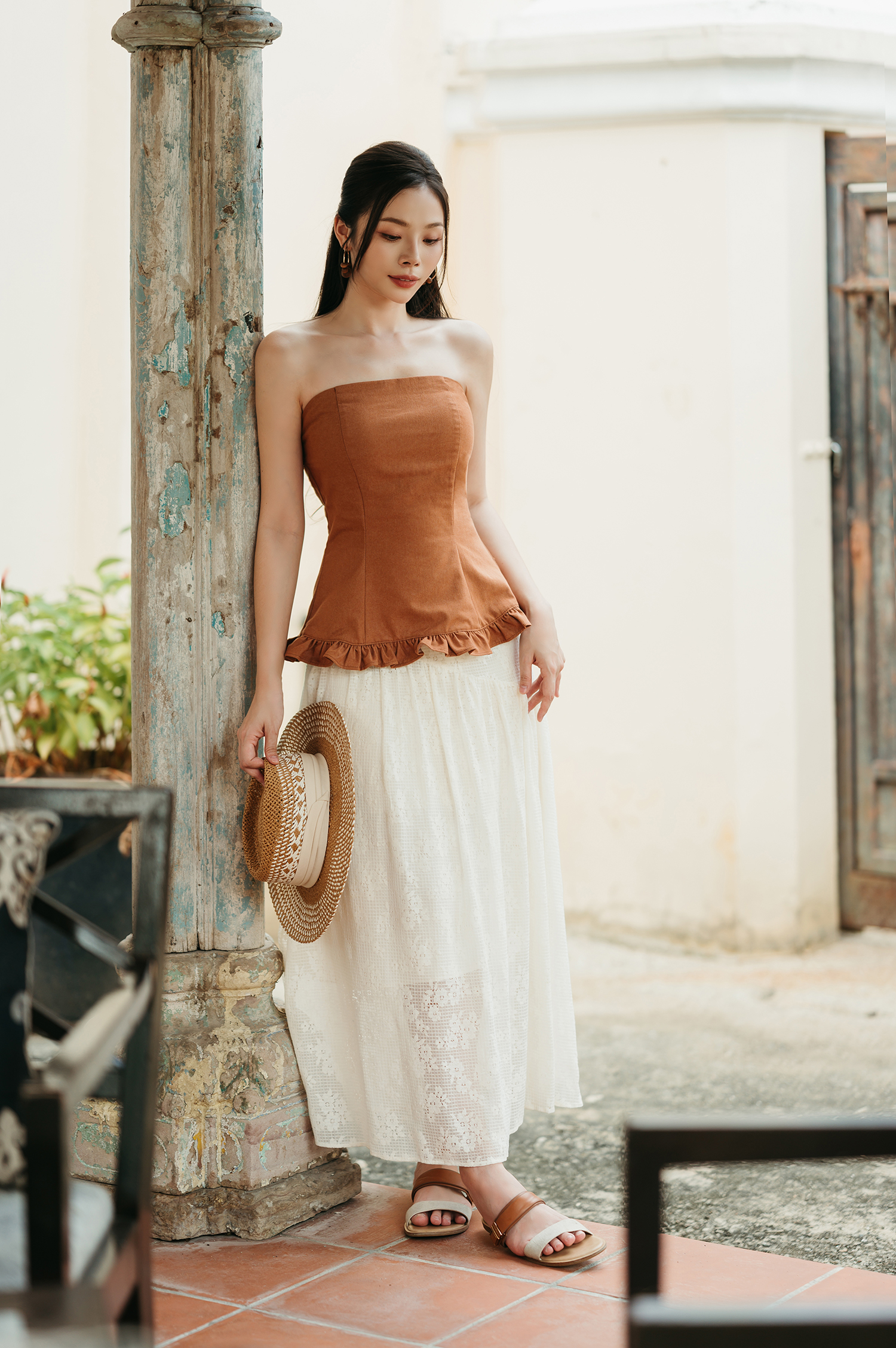 EVALYNN RUCHED LONG SKIRT (CREAM FLORAL)