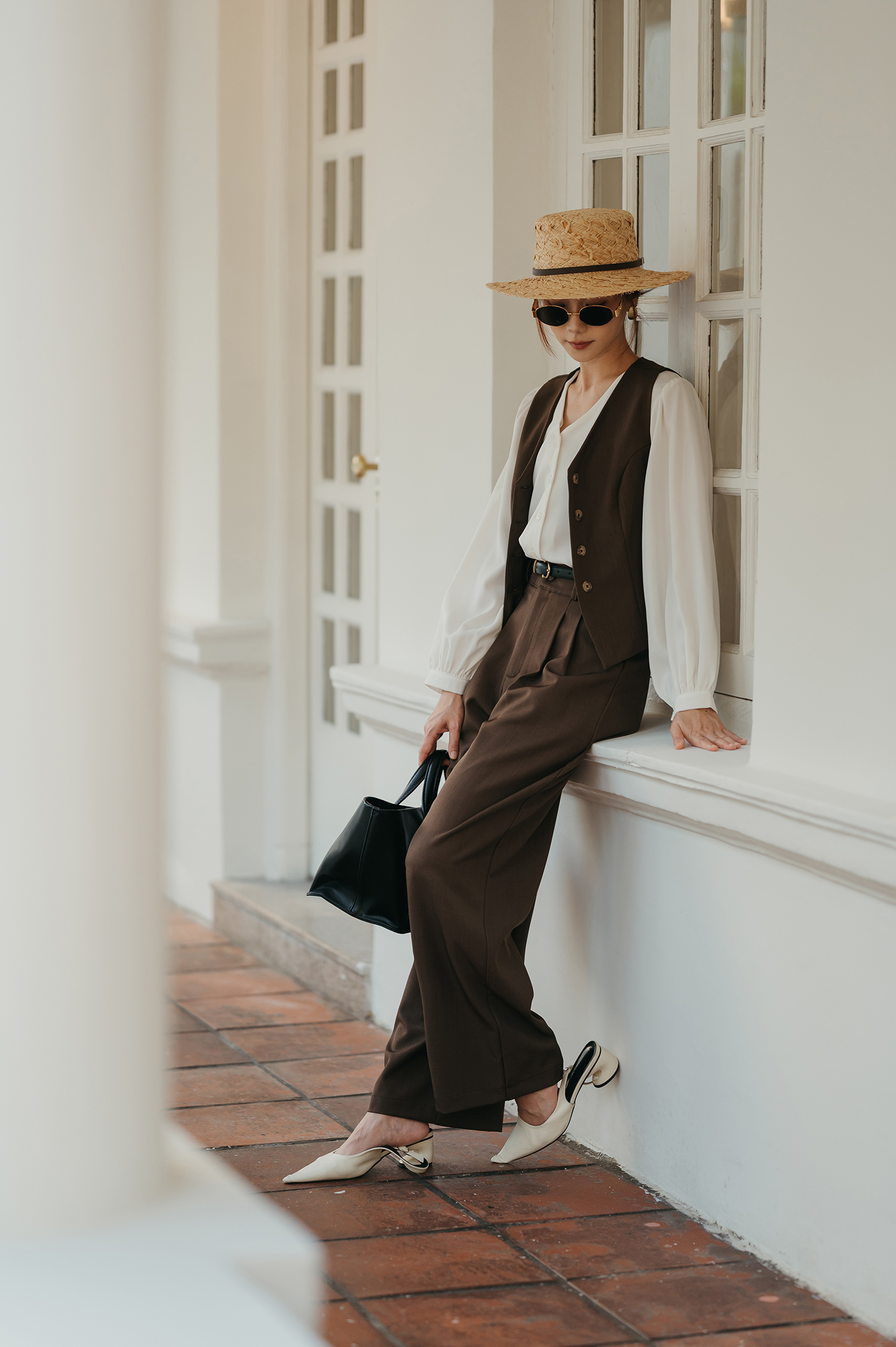 - - High waisted design with straight leg cutting