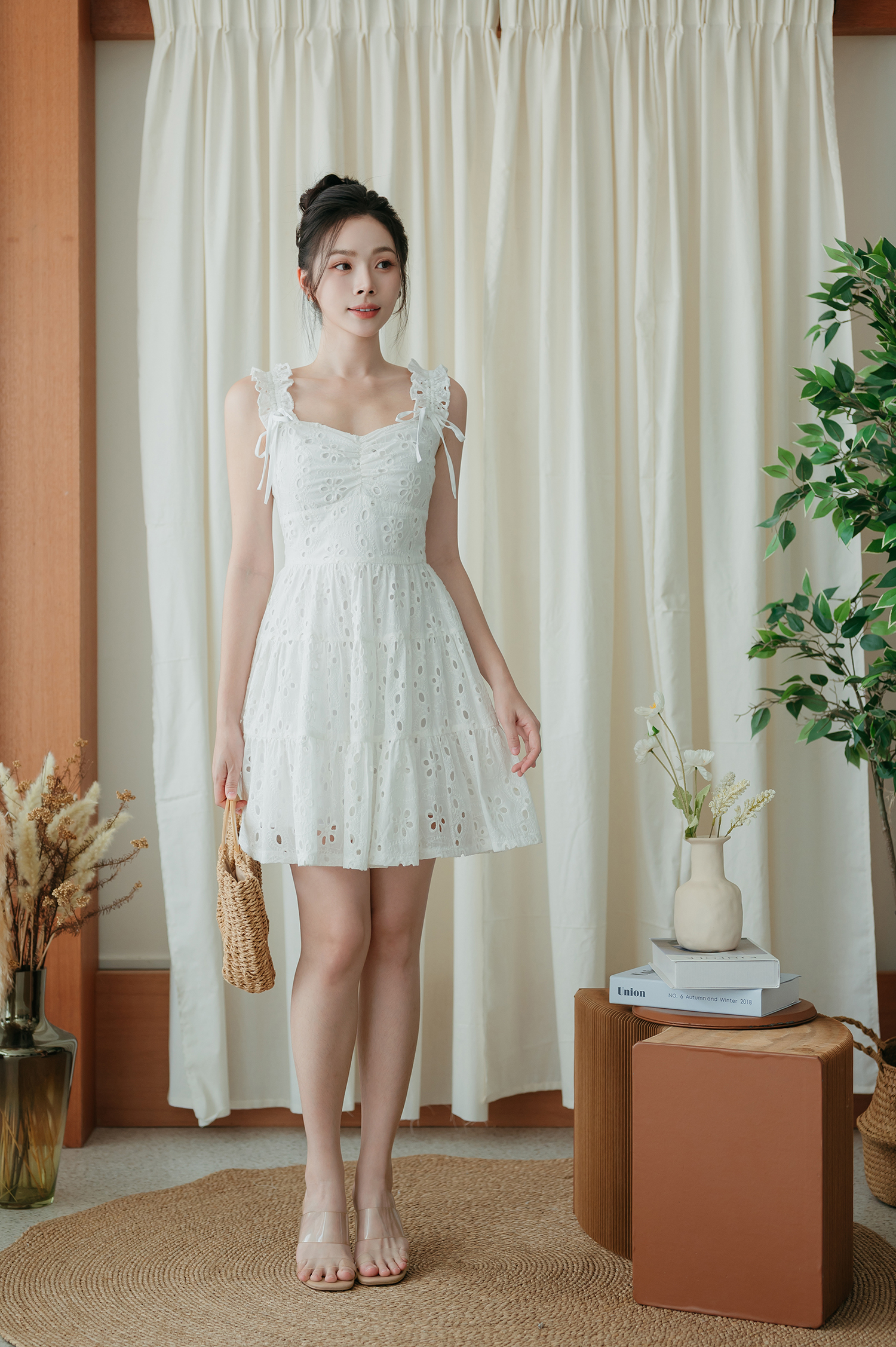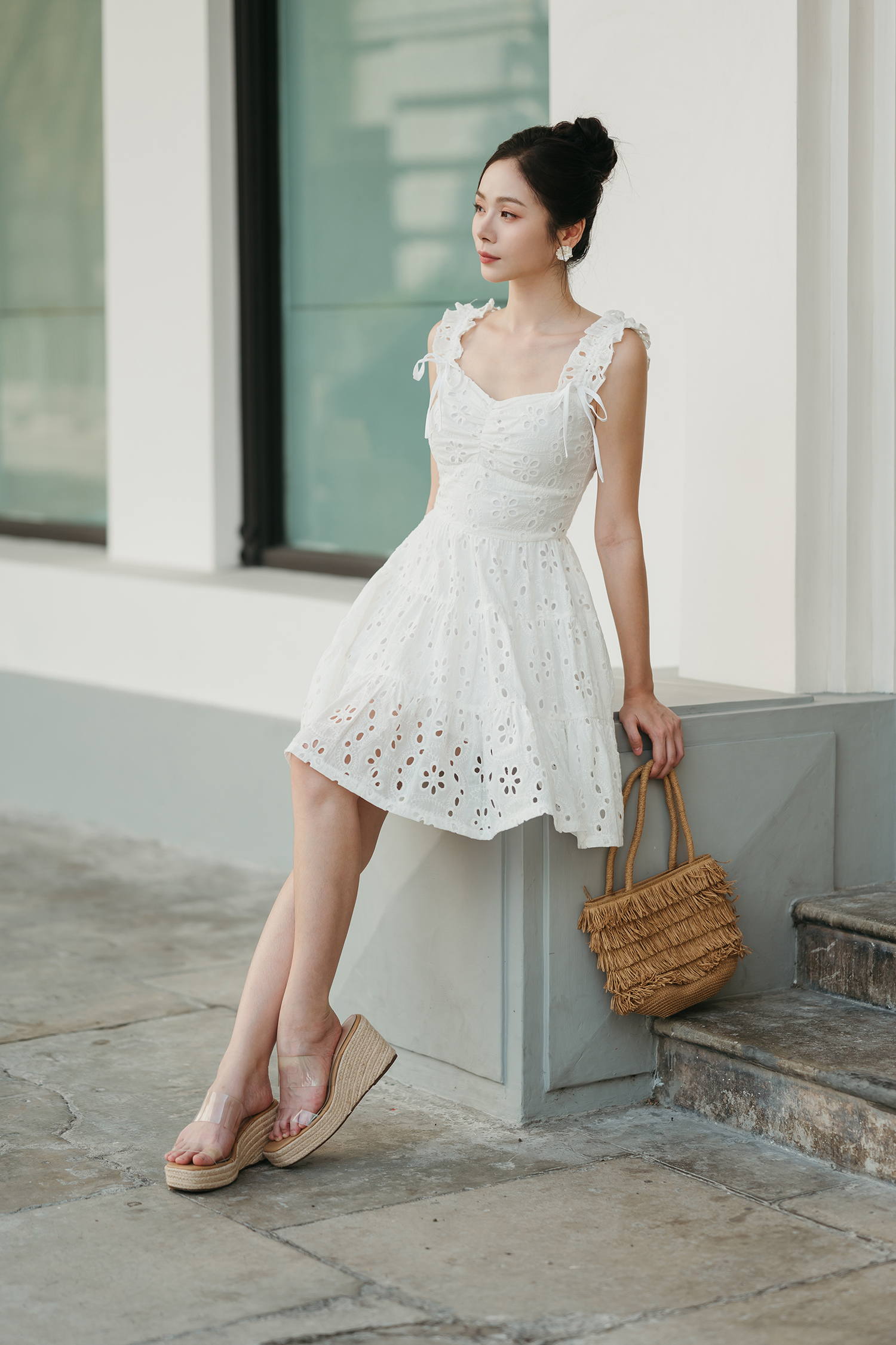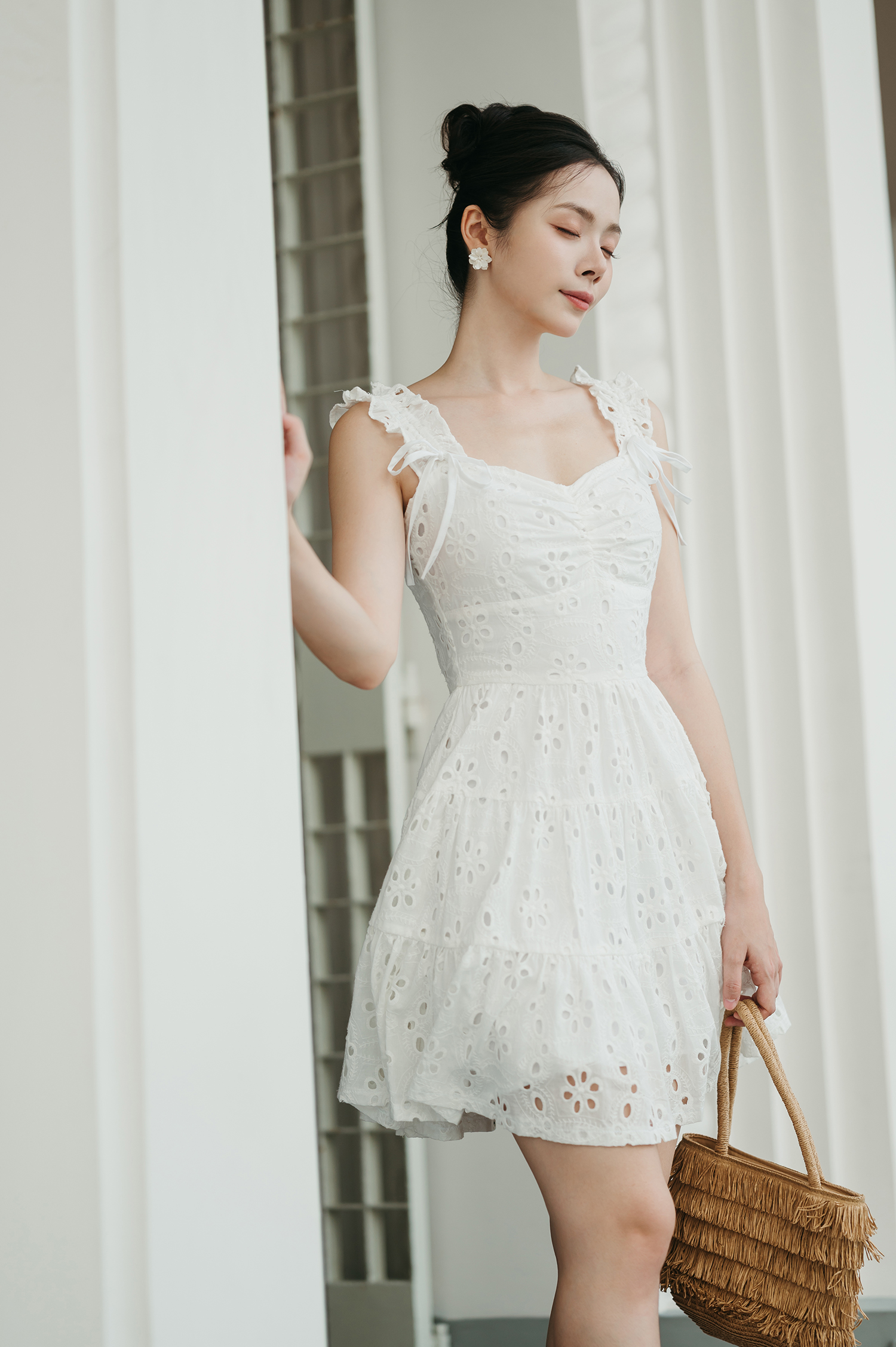 FLOELLA SWEETHEART MINI DRESS (EYELET)