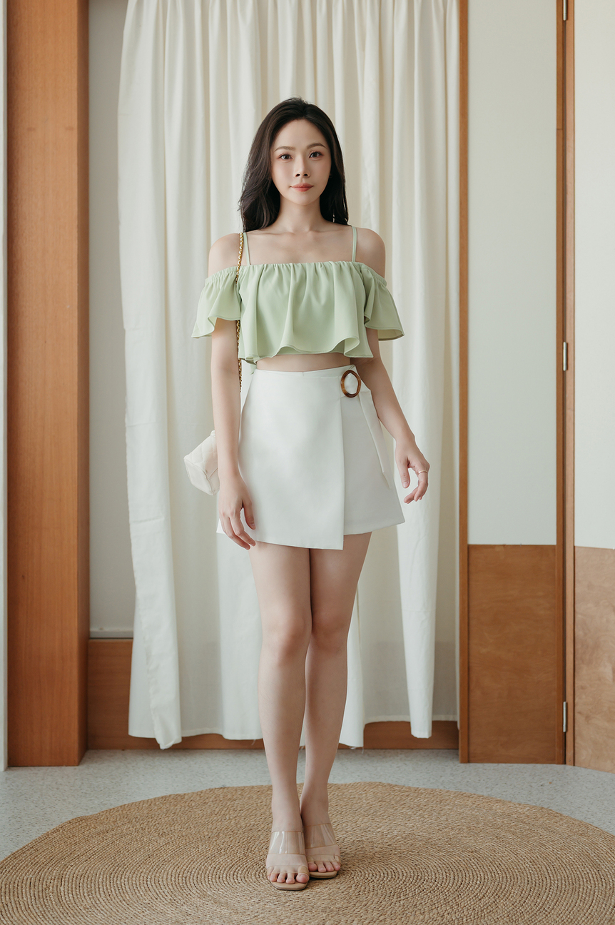 GRACEN COLD SHOULDER CROP TOP (APPLE GREEN)