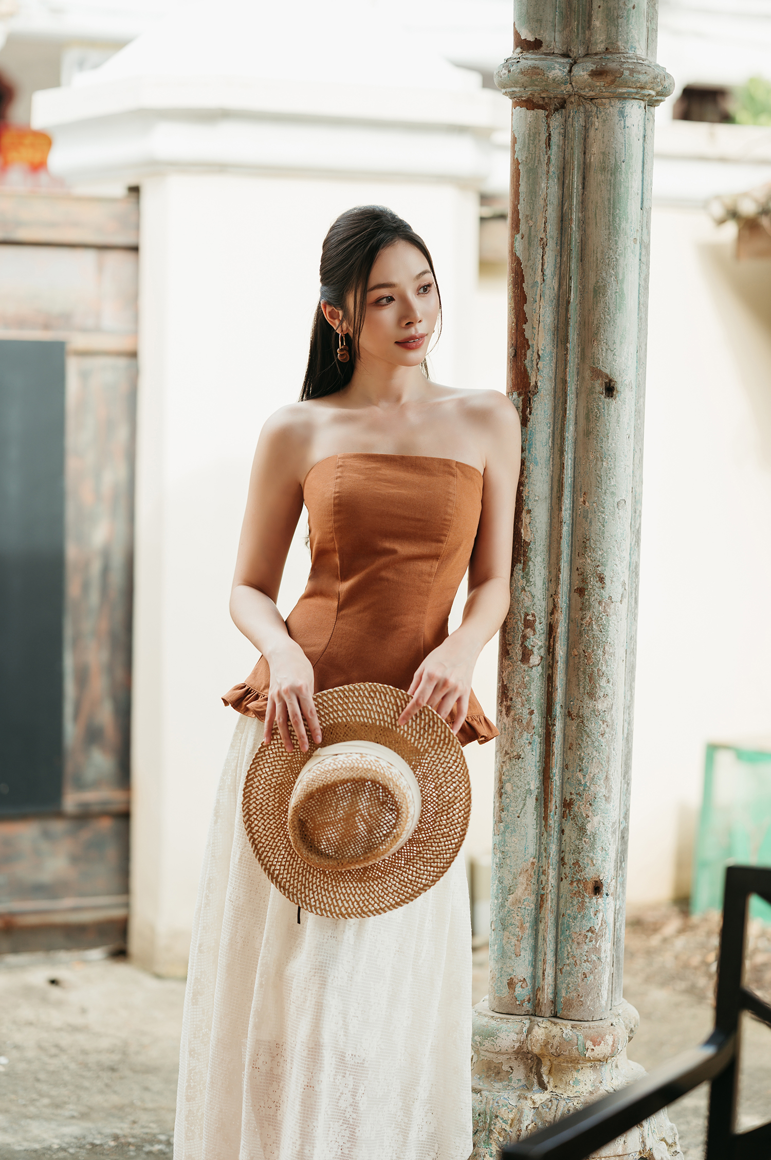 HARLYN ELASTIC TUBE TOP (BROWN)