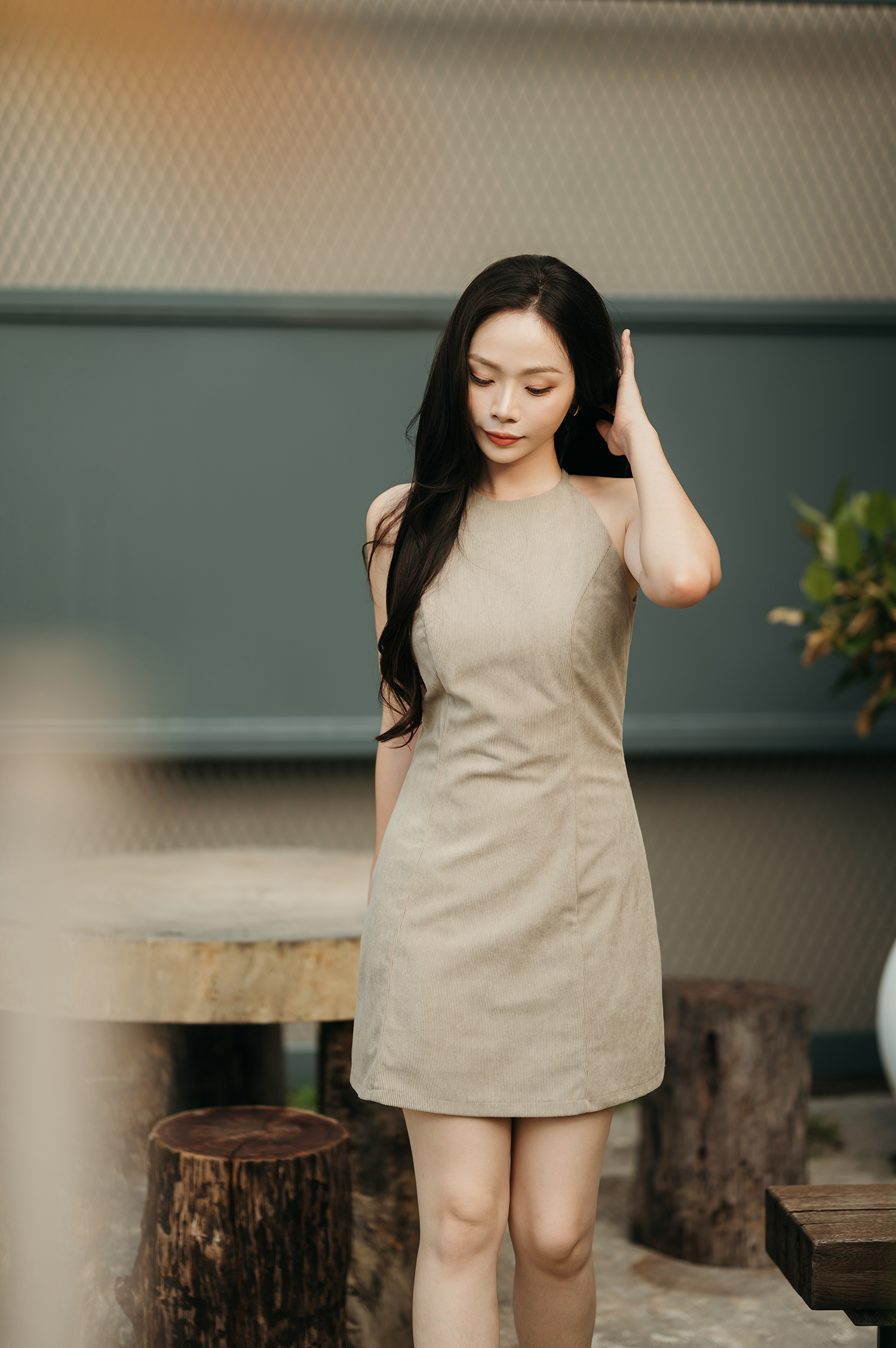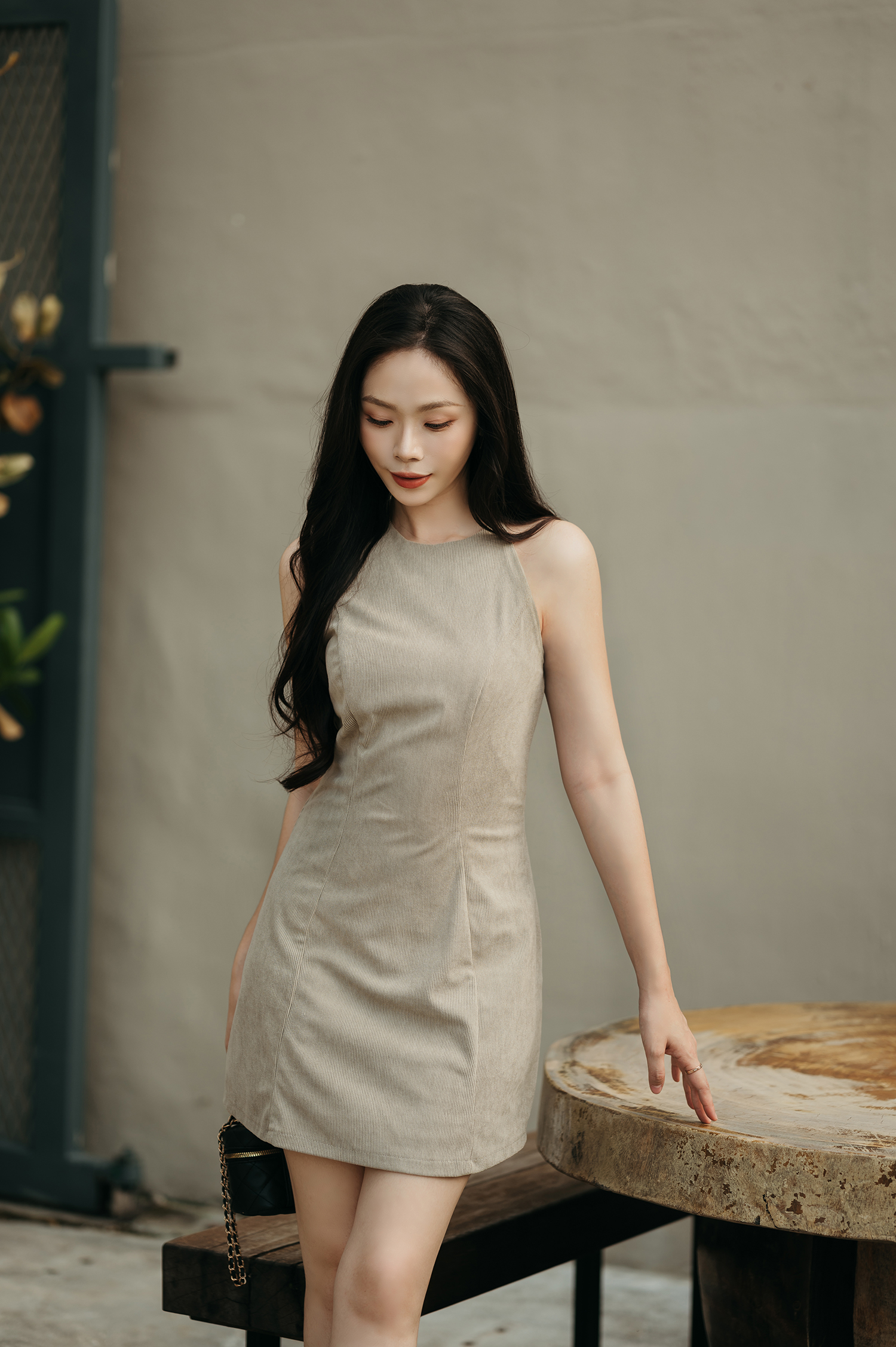 HAYZEE HALTER NECK DRESS (TRUFFLE)
