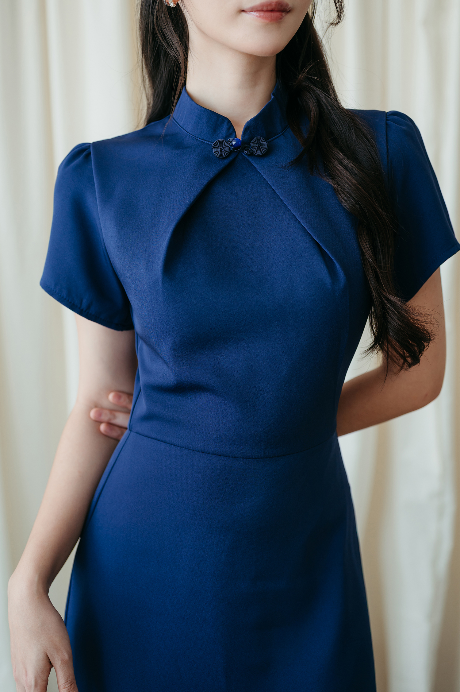 JANNY ASYMMETRICAL CHEONGSAM (BLUE)