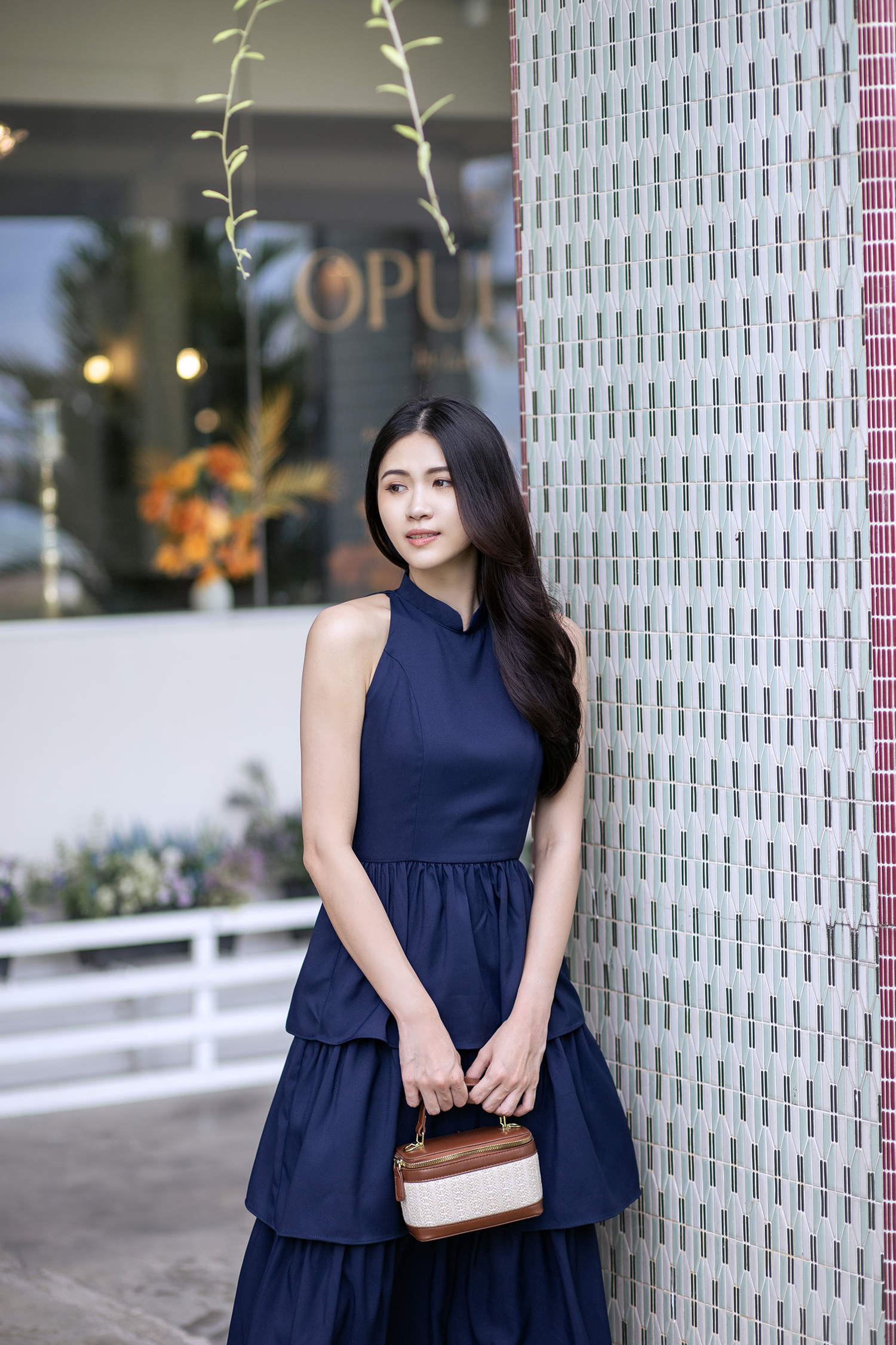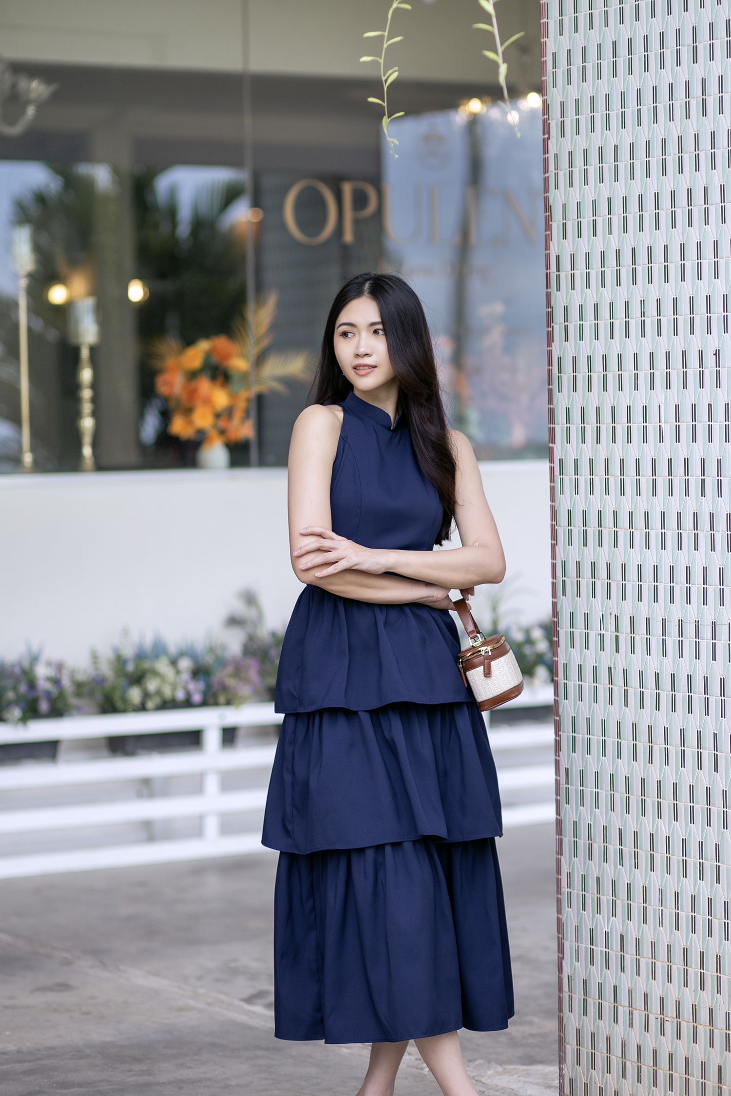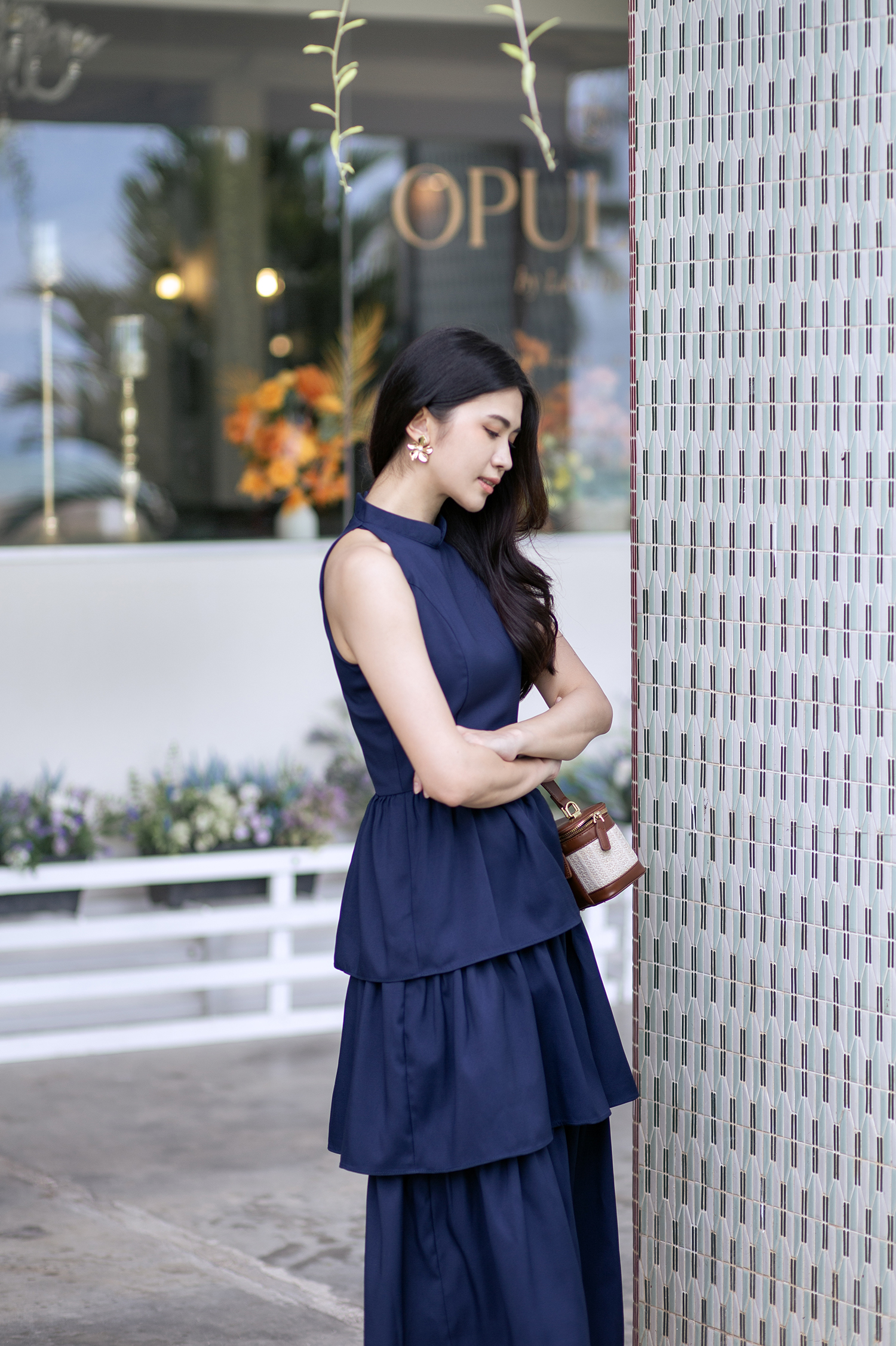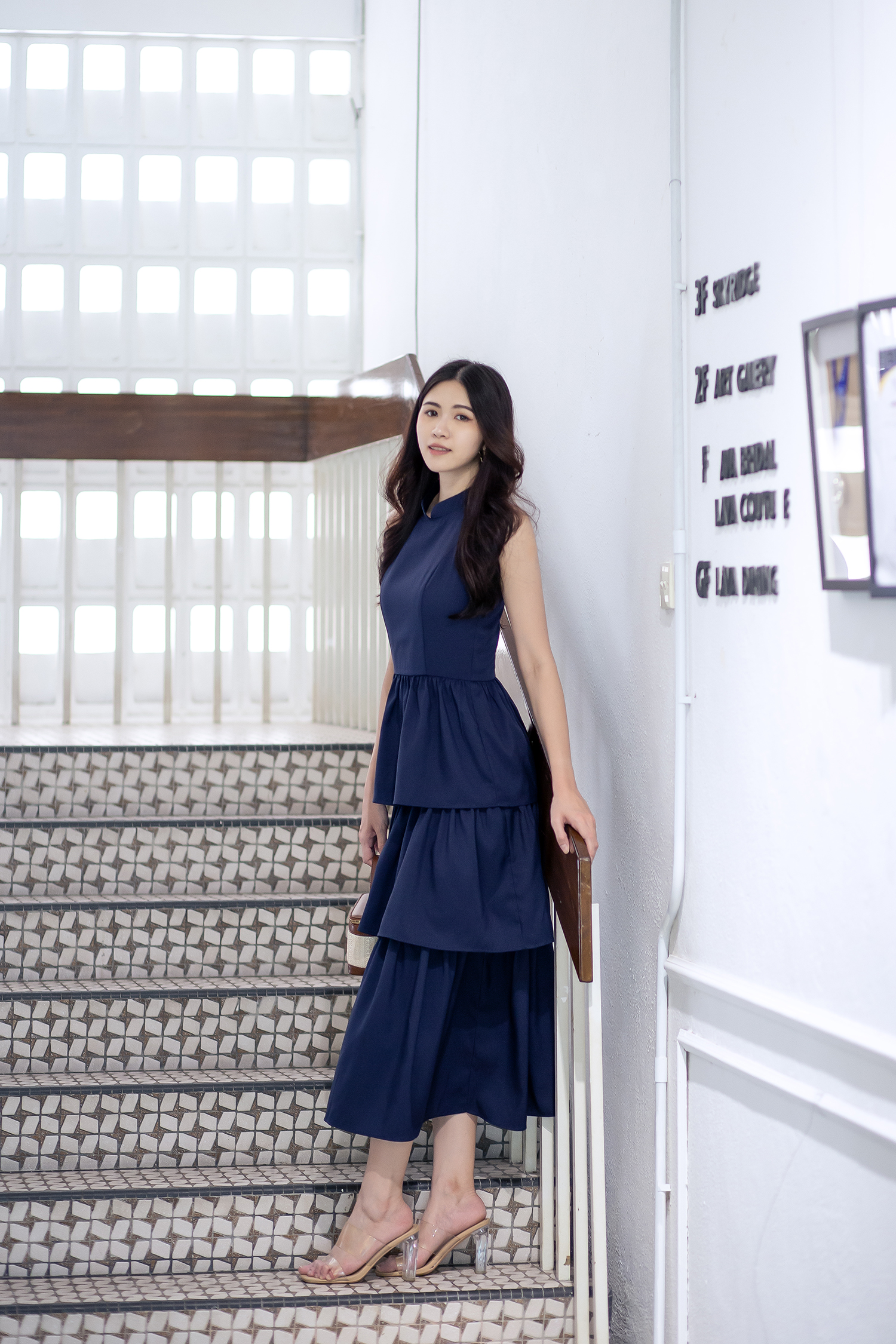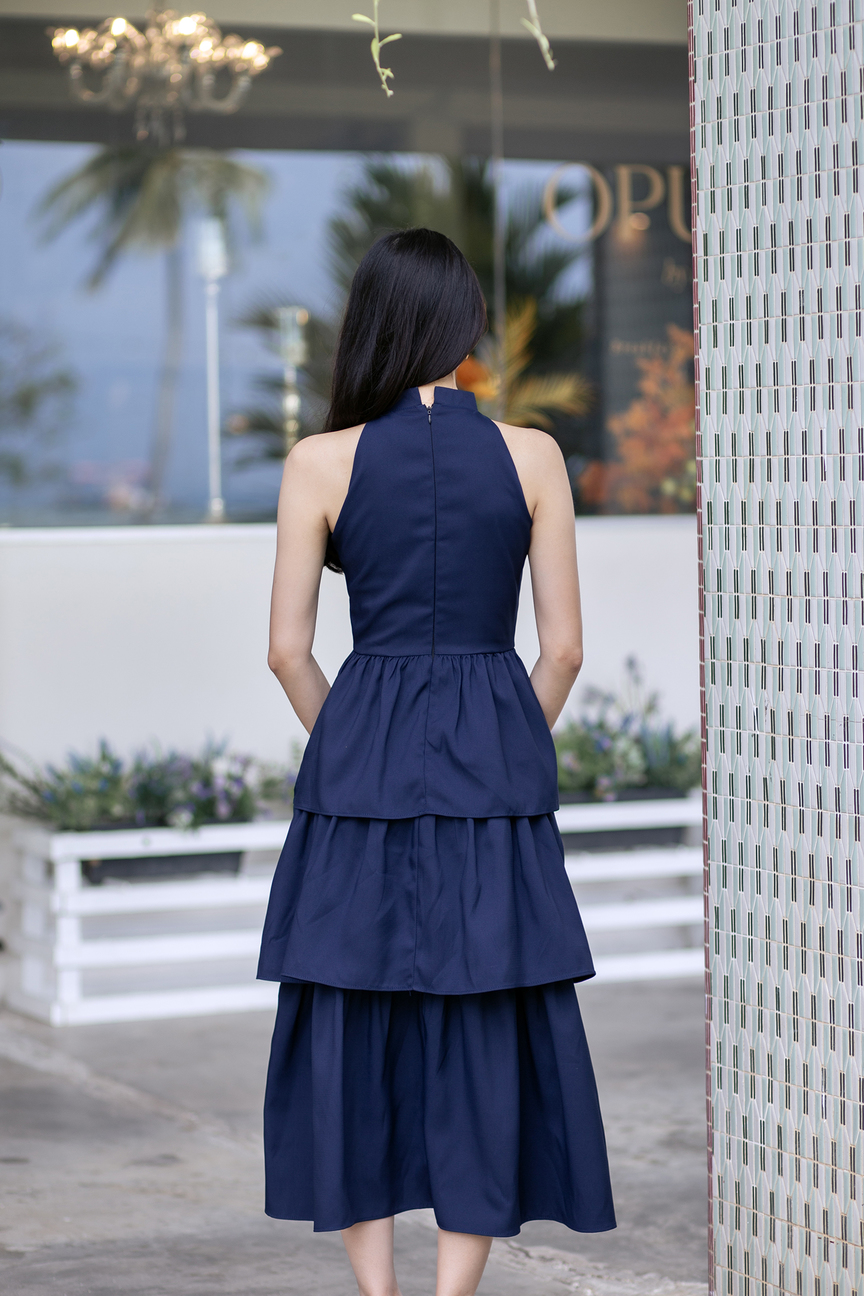 KACY MANDARIN COLLAR TIERED DRESS (DARK BLUE)