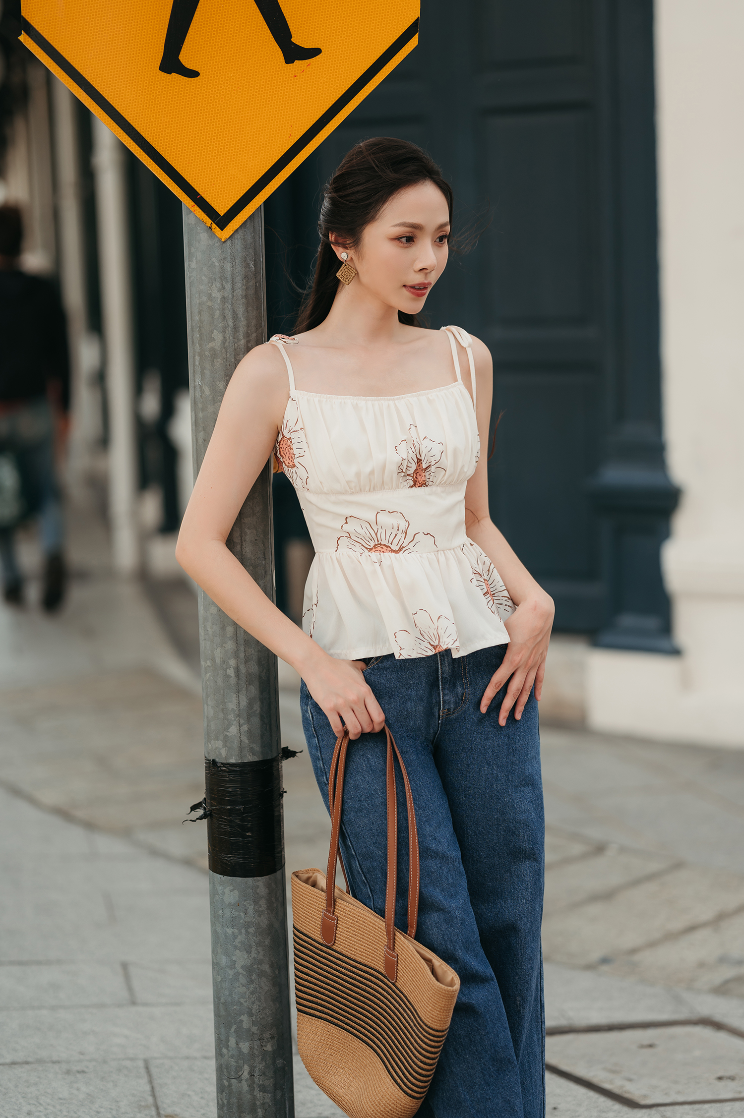 MECCA SELF TIE CAMI TOP (JEAN BLUE)