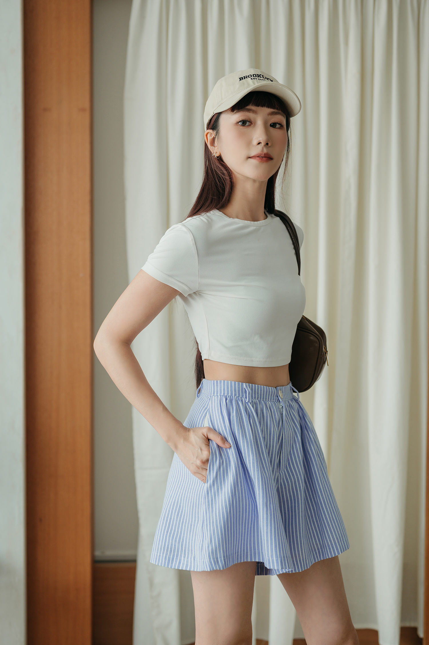 NOHEMI HIGH WAISTED SHORTS (BLUE STRIPE)