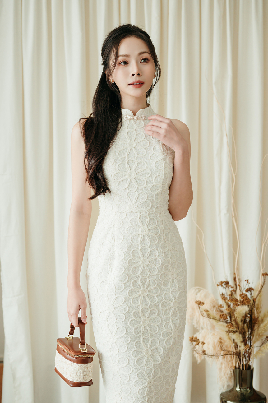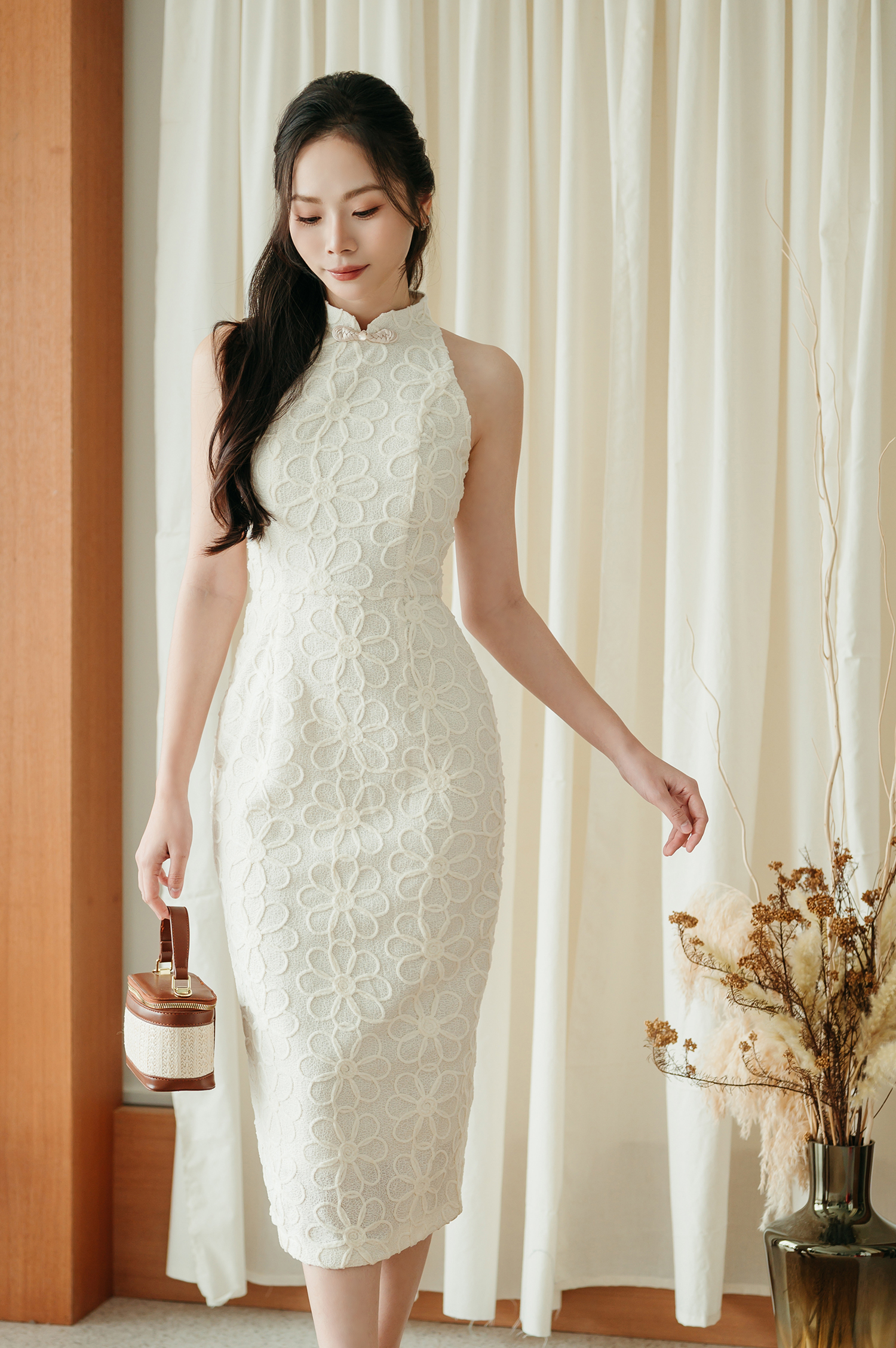 OLIDA CHEONGSAM MIDI DRESS (CREAM)