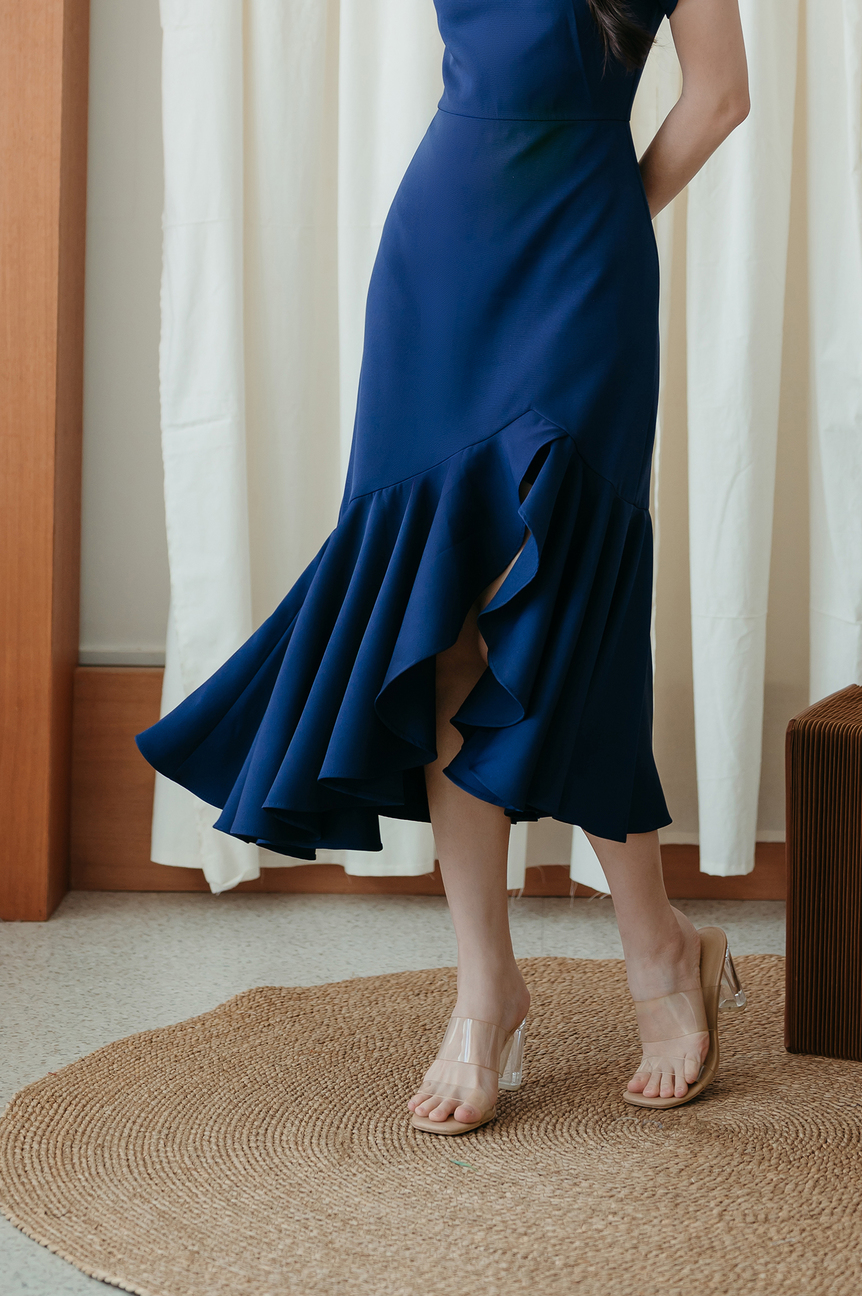 JANNY ASYMMETRICAL CHEONGSAM (BLUE)