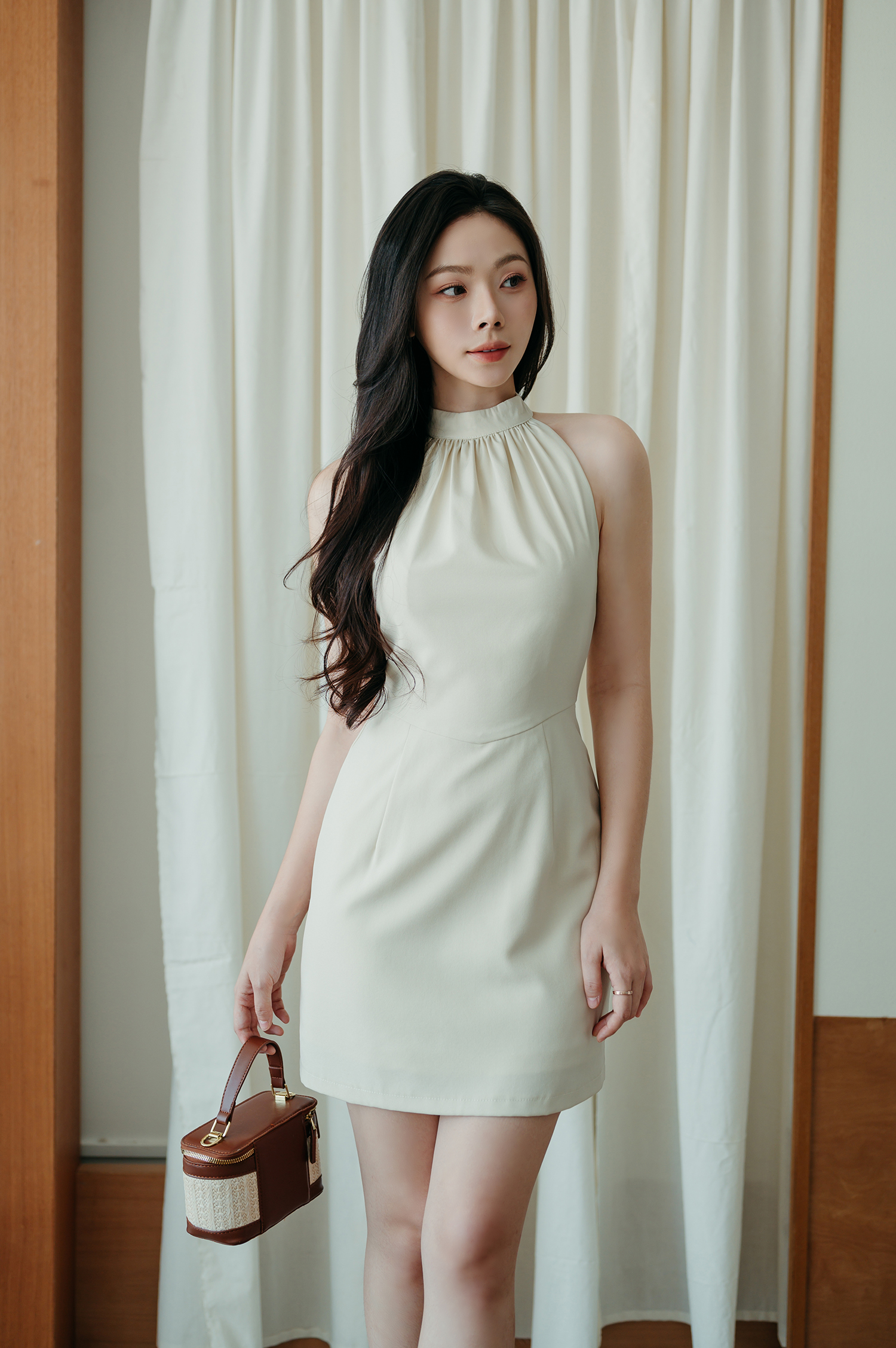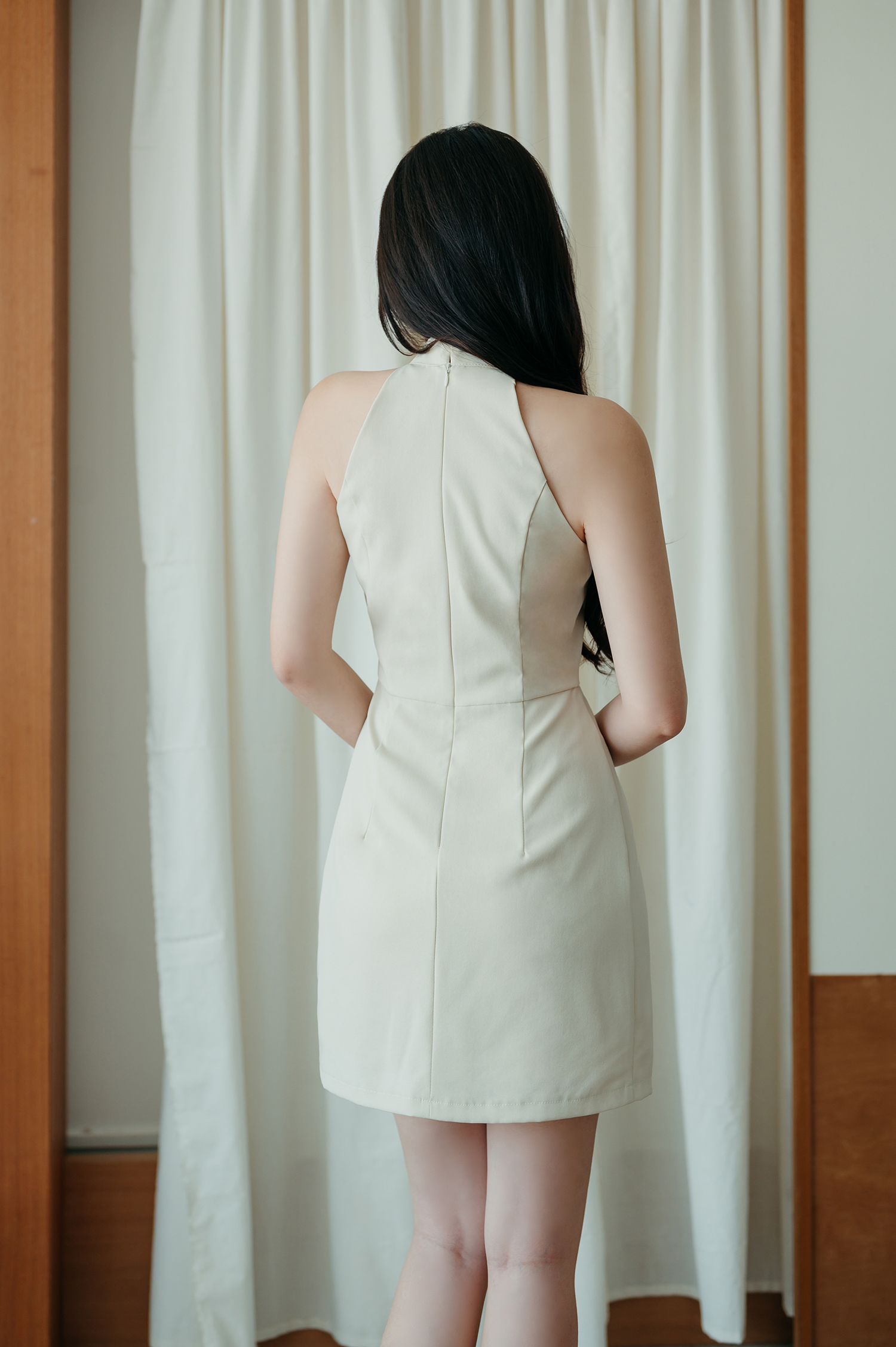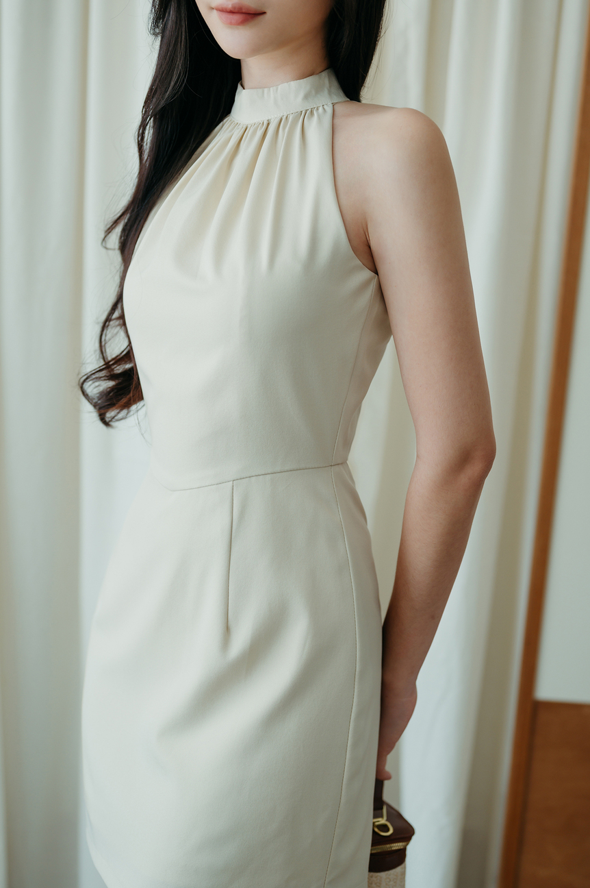 ROSSY HALTER NECK MINI DRESS (BEIGE)