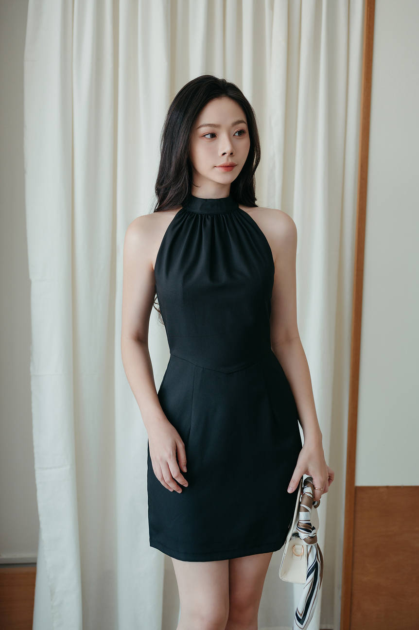 ROSSY HALTER NECK MINI DRESS (BLACK)
