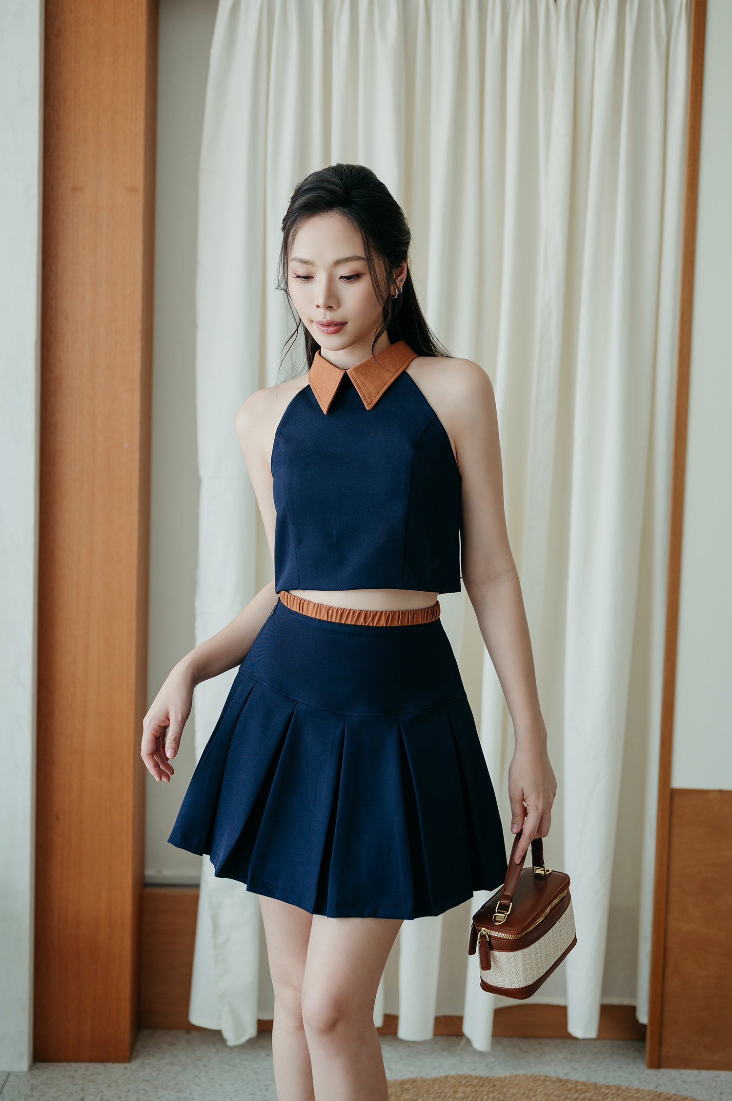 TYLER PLEATED A-LINE SKIRT (NIGHT BLUE)