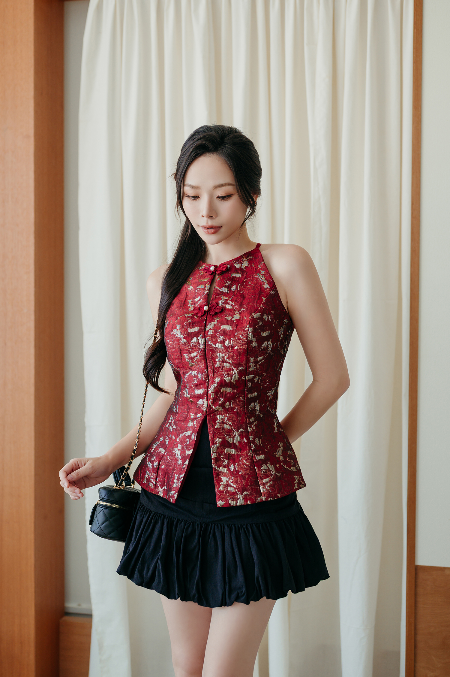 NATTIE HALTER NECK CHEONGSAM TOP (RED)